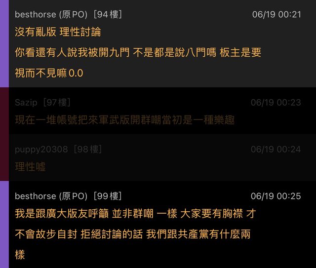 或對全體板友進行評論者,視為鬧板。(如討論本板板風)