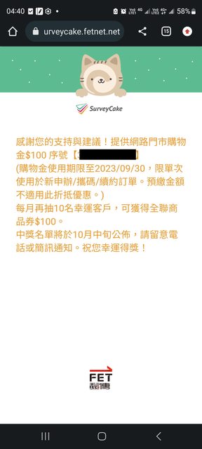 如題 遠傳續約 然後他邀請填問卷