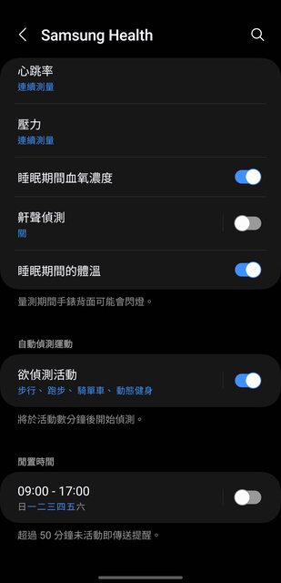 設定多了一個睡眠期間體溫偵測的選項