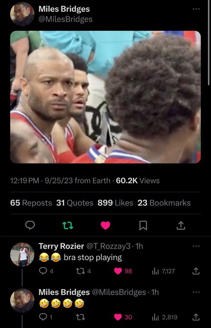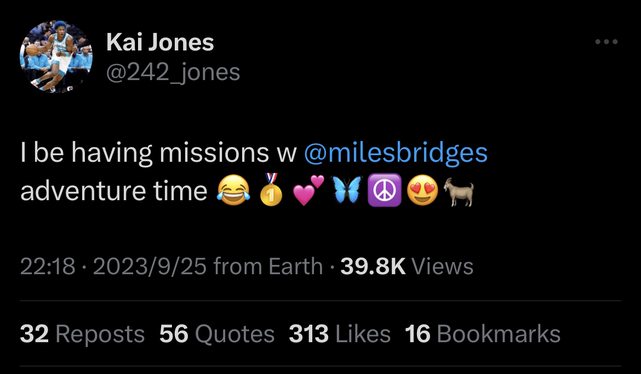 而他最新力作是發了一個推標記了Miles Bridges說他跟自己有任務在身,冒險時間到