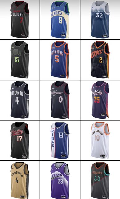 https://twitter.com/ComplexSports/status/1716491203955380324 The 2023-2024 NBA City Edition jersey's for every team. Which ones are we feeling the most? 各隊在2023-24年新賽季的城市版球衣 已經在今天稍早全數公開 https://i.imgur.com/NivzL53.jpg