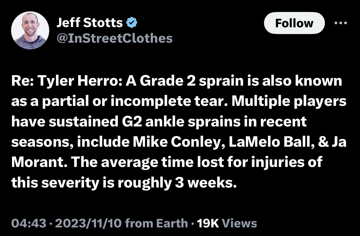 → OliverJin : 我之前三級扭傷大概三個月就能重返球場 頂級運動員 11/10 08:16