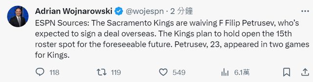推 TRosenthal : 話說國王的Sasha也沒什麼機會啊 11/25 12:08