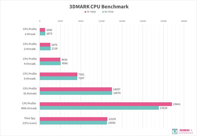 3DMARK CPU Profile,針對處理器的測試項目,6 個測試,分別使用 1、2、4、8、16 或最