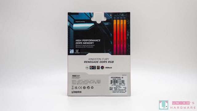 FURY Renegade RGB 記憶體外包裝採白色主視覺,上下黑底再加上經典的紅色點綴,中間則