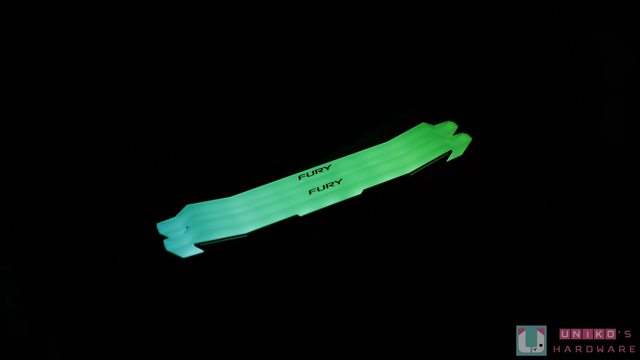 RGB 導光條造型採兩邊尖角設計,頂部也印上了 FURY 增強產品識別。記憶體尺寸為 133.3