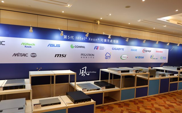 現場展示超過25台基於第5代Xeon處理器的系統和主機板,來自營邦企業、華擎科技、華