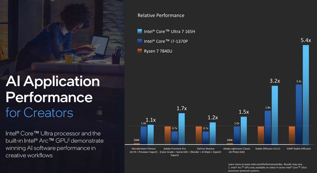 3款不同CPU在AI軟體應用的表現,Intel Core Ultra 7 165H對比Ryzen 7 7840U最高可達