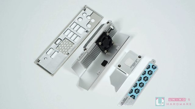 預先安裝好的一體式 I/O 檔板是現今的主流設計,以兩顆螺絲固定在散熱片上像極了微星