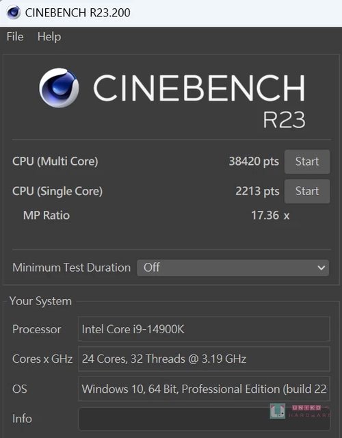 越強。CINEBENCH R23 跑分成績為,單核心 2213,多核心 38420。