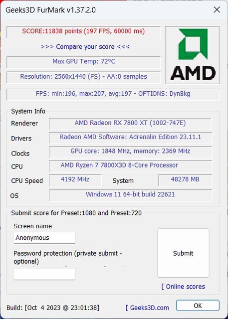 FurMark Score - Score 11838