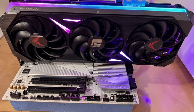 用料豪華具備一定的超頻空間風扇運轉起來也安靜,外型跟7900XTX差不多,更流線些