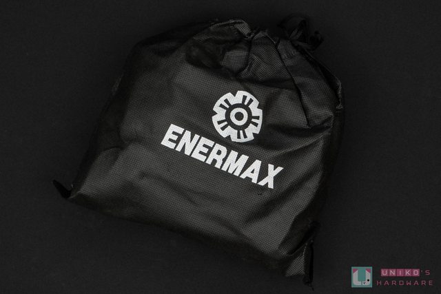 線材包的部分使用黑色束口袋簡單包裝,正面放上 ENERMAX Logo 點綴。