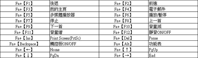▼Fn組合鍵及多媒體快捷鍵操作說明: