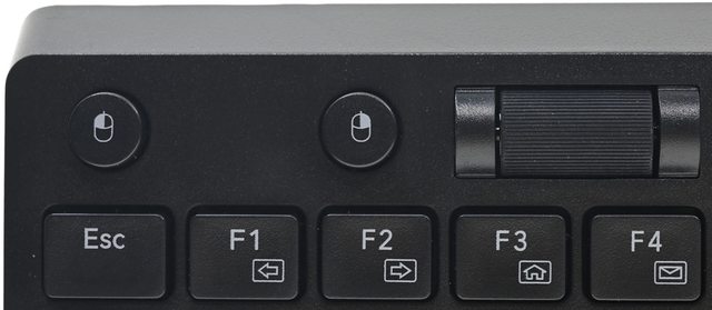 ▼鍵盤正面左上方配置獨立滑鼠左鍵、右鍵及滾輪,可由左手進行操作