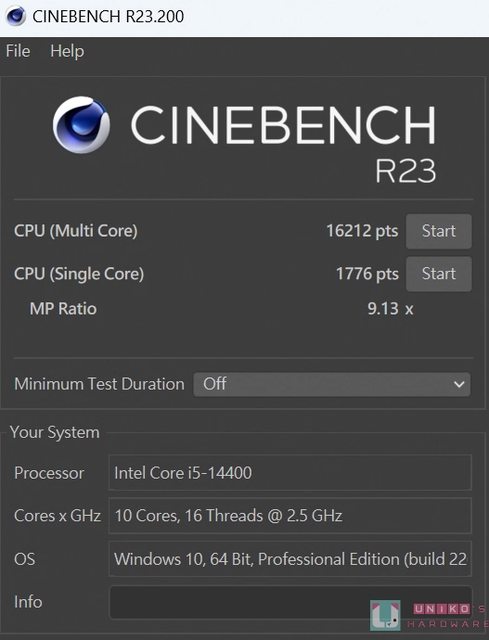 Cinebench R23 單核心 1776 pts,多核心 16212 pts。