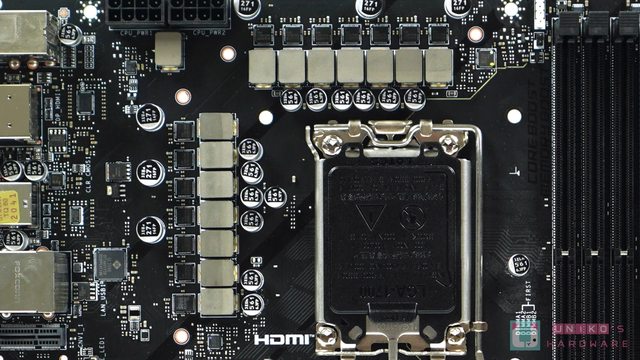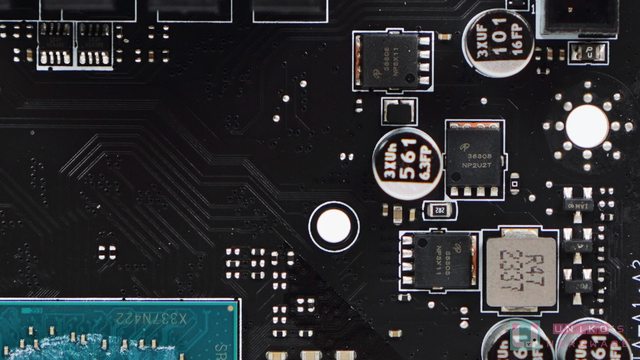 插槽內有大量 MLCC,供電電感一旁也有大量固態電容作輸出電容。