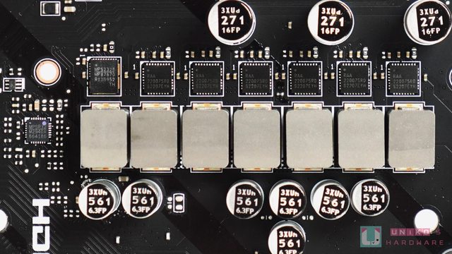 CPU 供電模組和電感的金屬散熱裝甲都採用延伸式的設計,既能增加散熱表面積,也可遮蓋