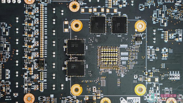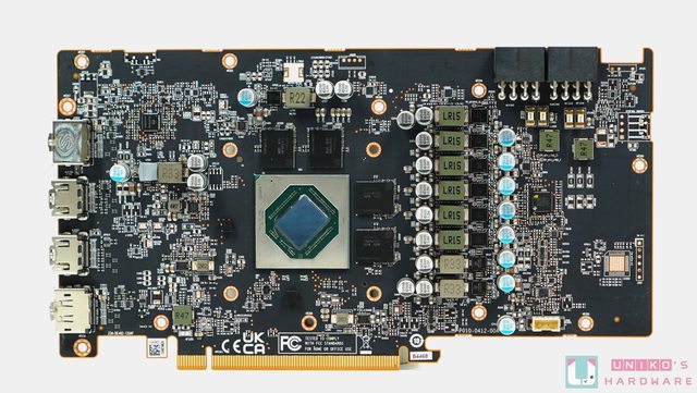 可惜有 4 顆 GDDR6 晶片被放在 PCB 背面,溫度很難降下來,廠商也只能利用金屬背板作
