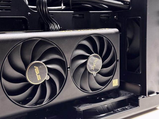 顯示卡主要透過機殼側邊排風及頂部冷排風扇散熱。