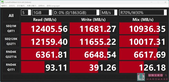 性能最高可達到 12,400 MB/s 的循序讀取、11,800 MB/s 的循序寫入。