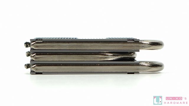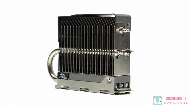 被動散熱,以 3 根熱導管加上大面積鋁製散熱鰭片,配合主機內良好的風流,即可帶走廢