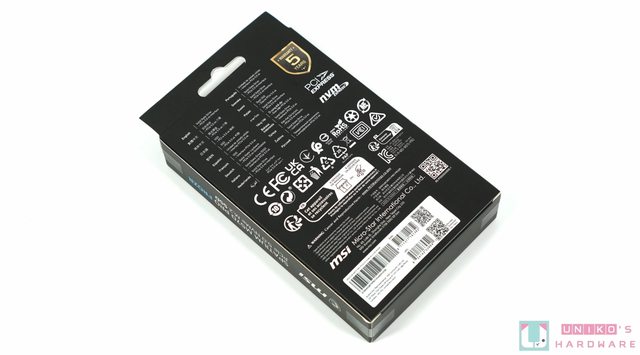 產品外盒正面印有散熱器外觀,直接就能感受到他的體積不小,左上角有 MSI 龍盾 LOGO,