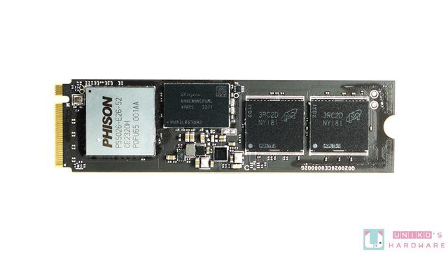 S5026-E26 控制晶片與 Micron TLC 快閃記憶體,並搭配 LPDDR4 記憶體當快取,因此