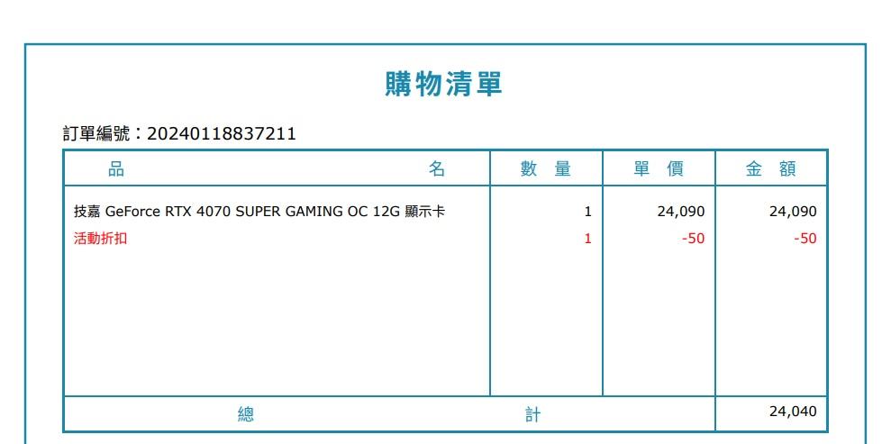 推 yric: 這個月初才在原價屋海鮮賣場買了一張4070s210.71.216.244 03/20 12:50