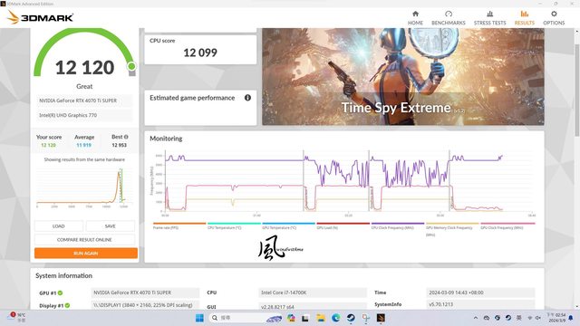 3DMark Time Spy Extreme score => 12120