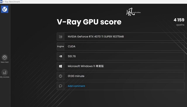 V-Ray GPU score => 4159