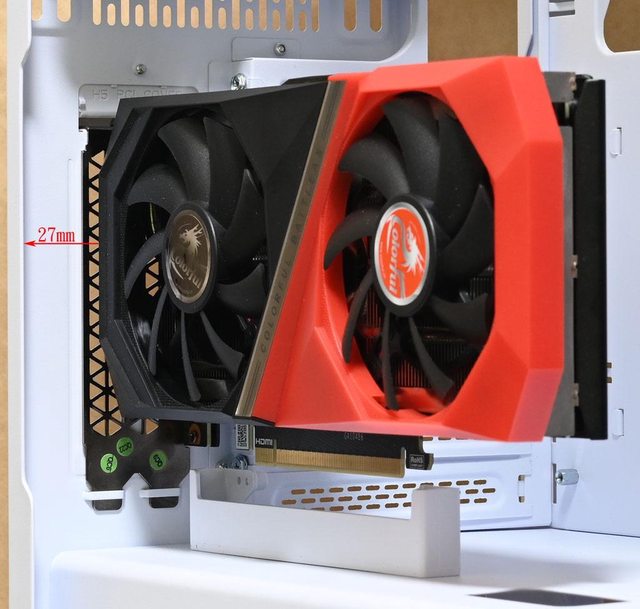 ▼垂直安裝七彩虹戰斧GEFORCE RTX 3050 DUO 8G顯示卡(253.4×132.5×41mm)時,顯示