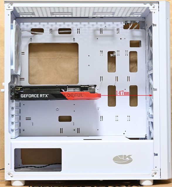 ▼水平安裝七彩虹戰斧GEFORCE RTX 3050 DUO 8G顯示卡(253.4×132.5×41mm)時,顯示