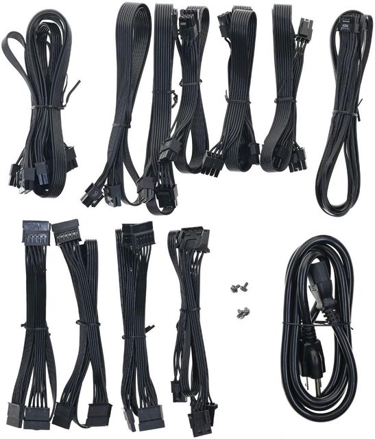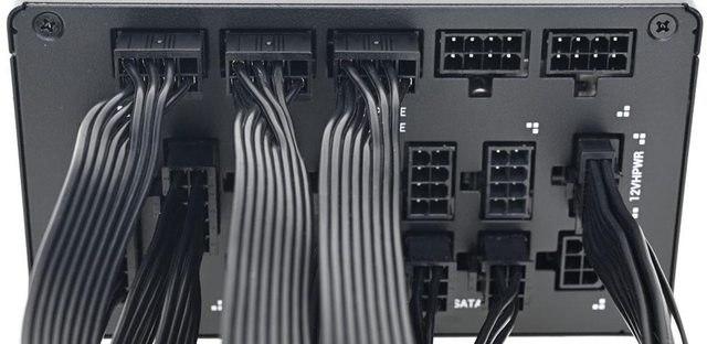 ○全模組化設計,使用黑色帶狀線材。提供1個ATX 20+4P、2個EPS 4+4P、1個12VHPWR、6