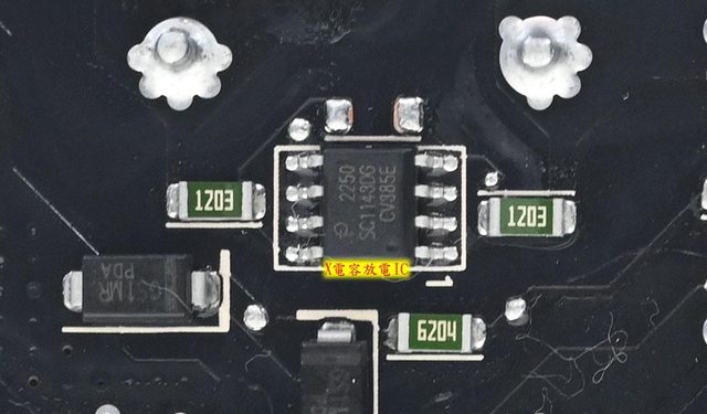 ▼主電路板EMI濾波電路背面有X電容放電IC及電阻