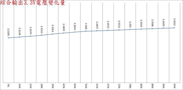 ○偏載測試,12V維持空載,測試3.3V滿載、5V滿載、3.3V/5V滿載的3.3V/5V/12V電壓變