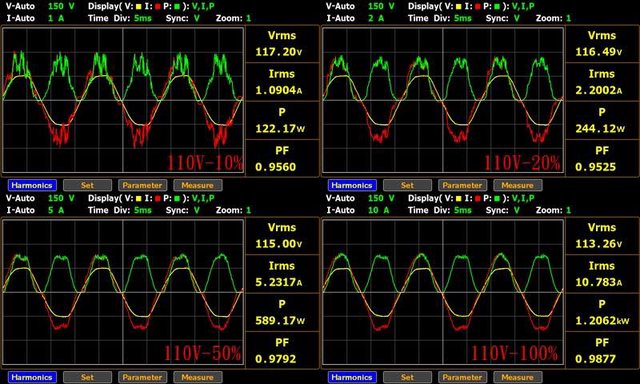 分別為33.6mV/11.2mV/9.6mV,於純12V全負載輸出下12V/5V/3.3V各路低頻漣波分別為