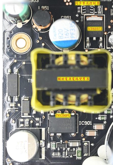3.3V/5V DC-DC MOSFET採用Infineon。APFC及一次側MOSFET採用TO-247封裝