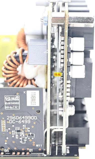 短路,去除NTC所造成的功耗損失。EMI濾波電路與一次側電路之間有隔板,直立安裝的保