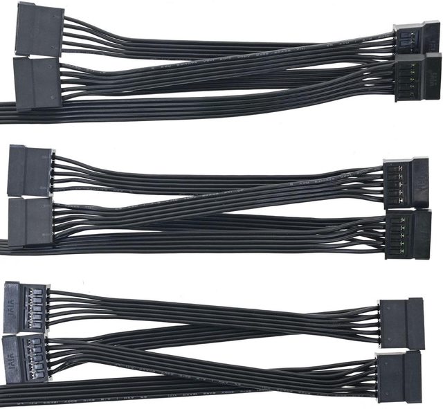 ▼3條SATA黑色帶狀模組化線路,提供12個直式SATA接頭,至第一個接頭18AWG線路長度50
