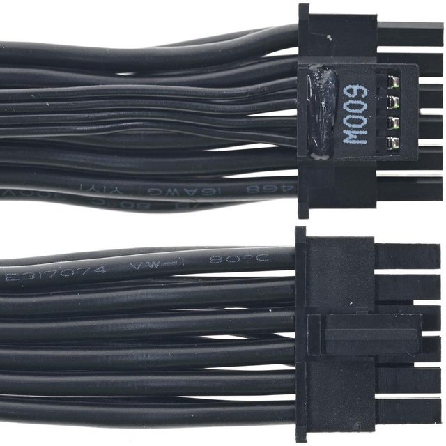 ▼1條12VHPWR黑色帶狀模組化線路,16/28AWG線路長度74公分,接頭印上600W,4條小信