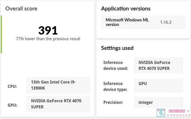 載。測試項目有分成 CPU 或是 GPU,可以透過 float32、float16、Integer 項目顯示分數