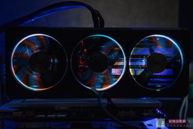 正面採三風扇技嘉風之力散熱系統,搭載 3 個 90 mm 風扇,搭配正逆轉 Alternate Spinn