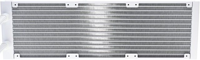 ▼鋁製水冷排尺寸396×120×27mm,可安裝3個120mm風扇,厚度27mm水冷排內含12條21mm