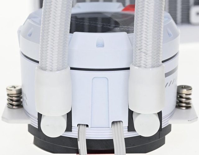 鋁製360mm水冷排內含12條21mm水道,增加蓄水量並擴大散熱面積,水管包覆編織網並隨