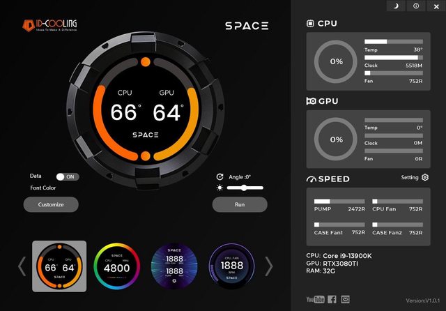 LCD螢幕,專用SPACE軟體可顯示即時CPU/GPU溫度、風扇轉速、頻率、使用率等監控資訊