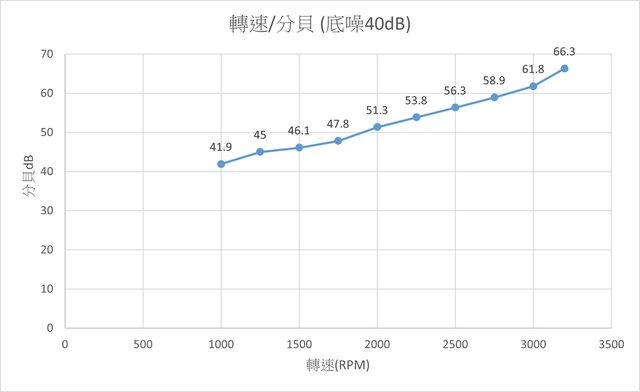 由於我家這邊的底噪約為40-41分貝,所以1000轉基本上只剩底噪