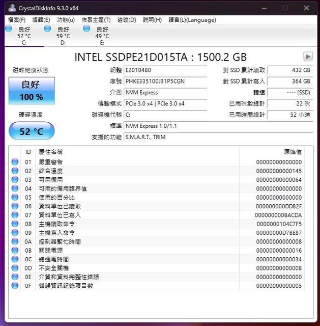 儲存:Intel Optane SSD 905P 1.5TB (系統PCIe_2)
