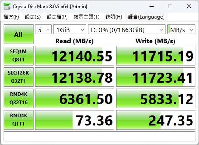 循序讀取12410MB/s 循序寫入11715MB/s