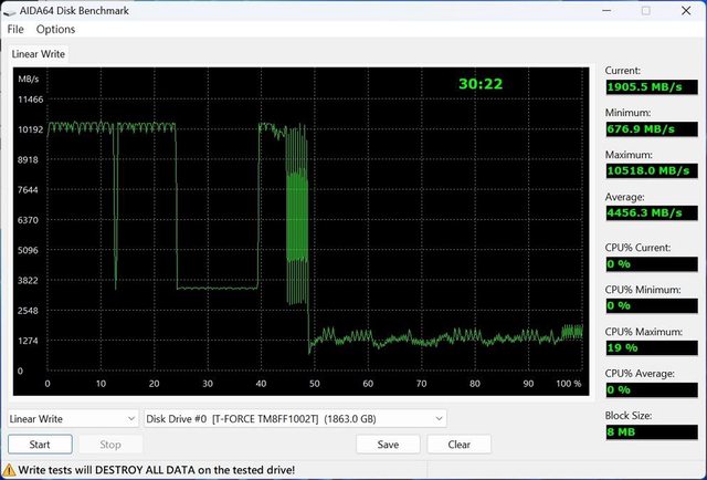 最後進行全碟寫入,平均速率為每秒4456.3MB/s